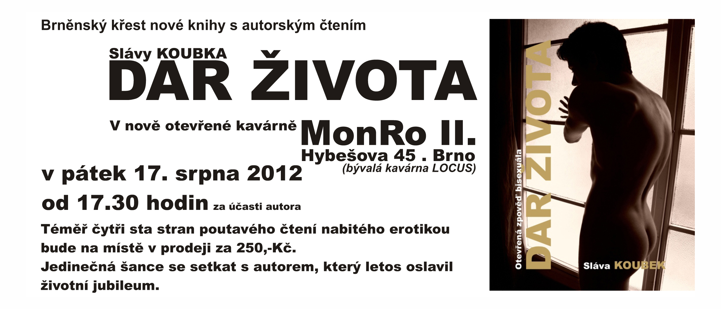 V pátek 17. 8. 2012 od 17.30 hodin Vás zvu na křest nové knihy